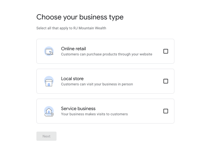 - If clients regularly visit your office, you can instead choose Local store and add your address. Avoid Online retail.