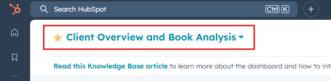 - The Client Overview and Book Analysis Dashboard should appear by default. If not, you can change dashboards by clicking on the title.