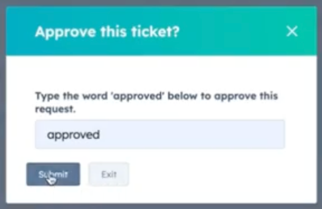 - If you select Confirm, you’ll need to type the word ‘approved’ in the text box to approve the request.